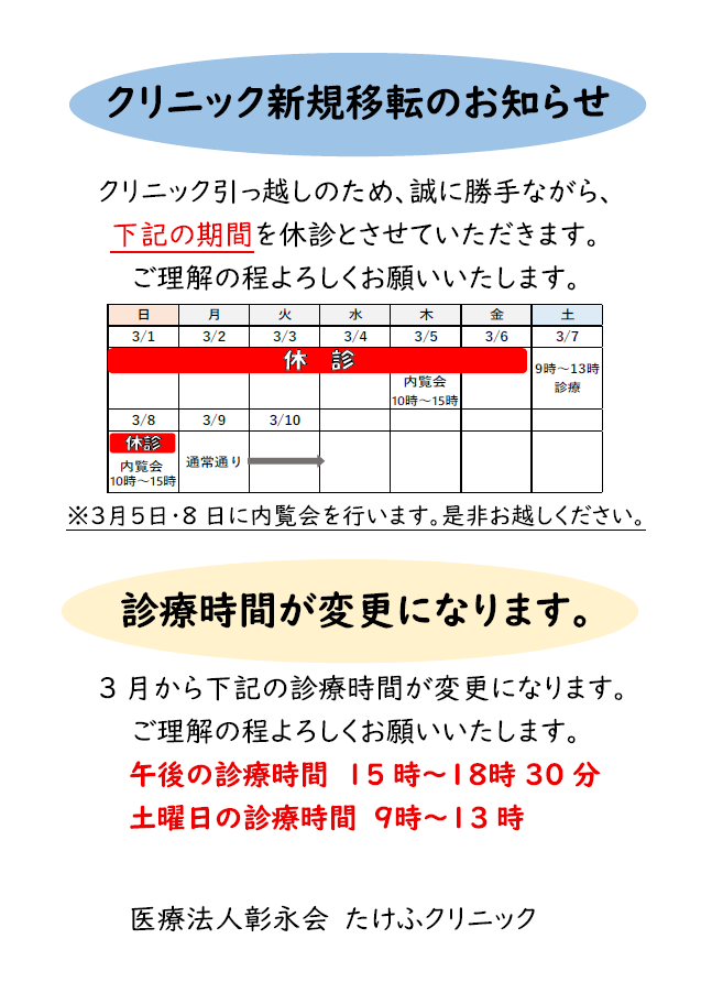 新規移転・診療時間変更のお知らせ(令和8年3月より)